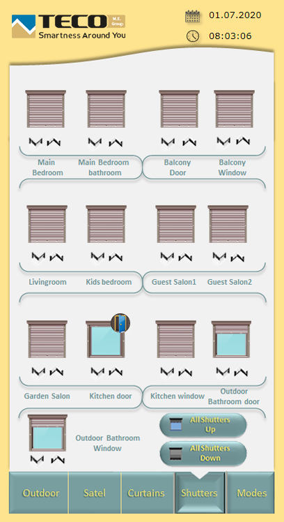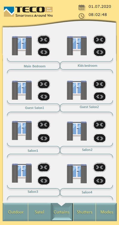Thanks to the clear and easy software, the owner of the villa can conveniently check and adjust the condition of all blinds in the villa on his mobile phone. He can control the curtains both with the help of a remote control and individually or simultaneously from its mobile devices.