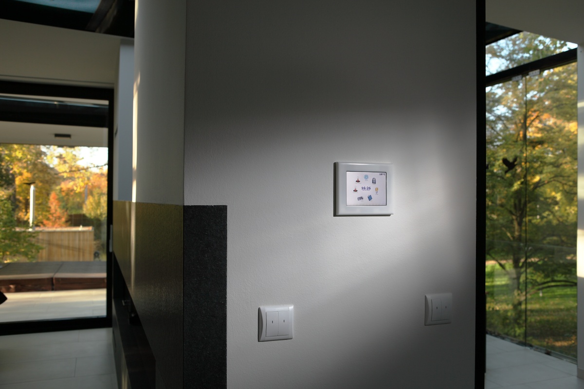 Training center is fully automated by intelligent electrical installation controlled by system Tecomat Foxtrot from our company. This technology controls and visualize complete lighting system (modern fluorescent tube lights), heating system containing two circuit gas boilers, supplying 25 radiators and floor heating of other part of the building. Heating is controlled according to measurement of outside temperatures and temperatures in rooms. Each room is independent. To change temperature from preset and pre-programmed cycles, they use interior module RCM2-1.