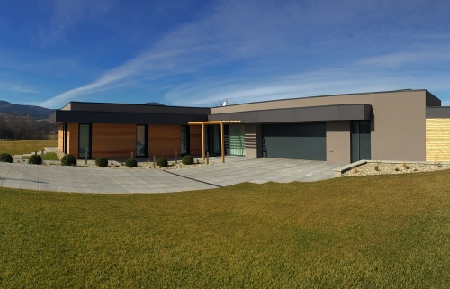 The integration in this house means control system of heating/air-conditioning, consisting of hot water floor heating, ceiling heating/air-conditioning and heating ladders. Hot water for the system is supplied by heating pump. Cold water for ceiling air-conditioning is pumped from underground drilling. There is integrated also security system, outside jalousies and blinds etc.