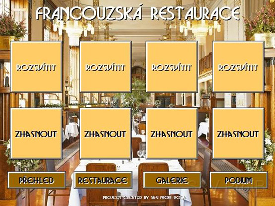 In 2008,a brand new lighting control system was installed in the French restaurant. Installation of the hardware part was carried out by GOOLST s.r.o. Installation of software was handled by S&V ProIB.
