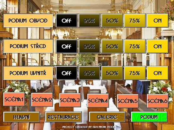Lighting control system of the French restaurant in the Municipal House in Prague. Implemented by: S&V ProIB