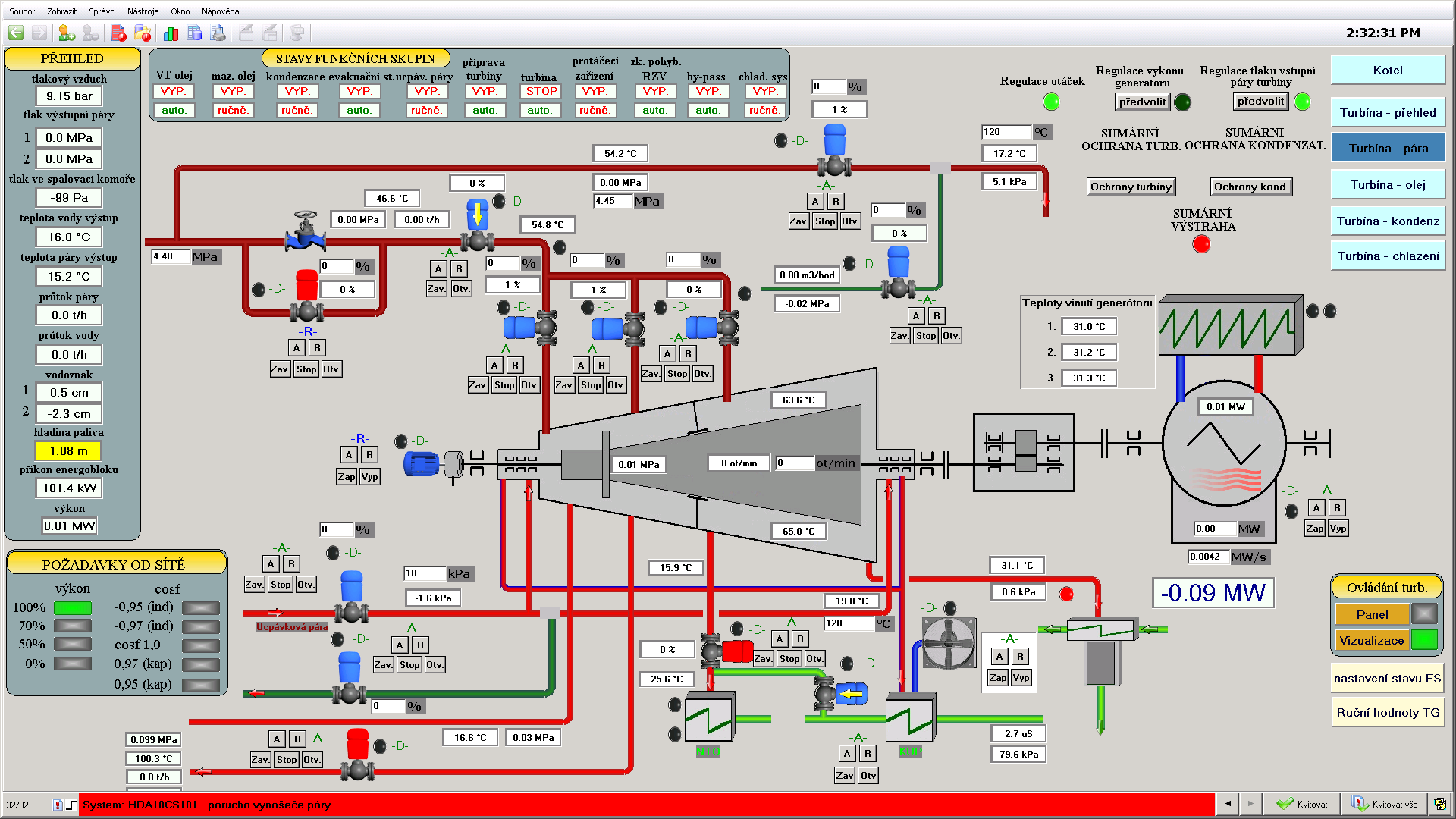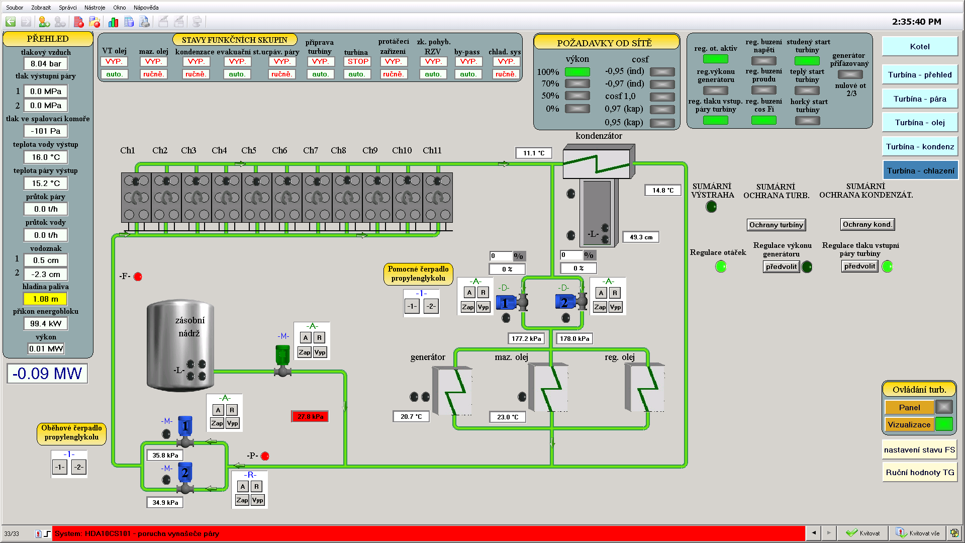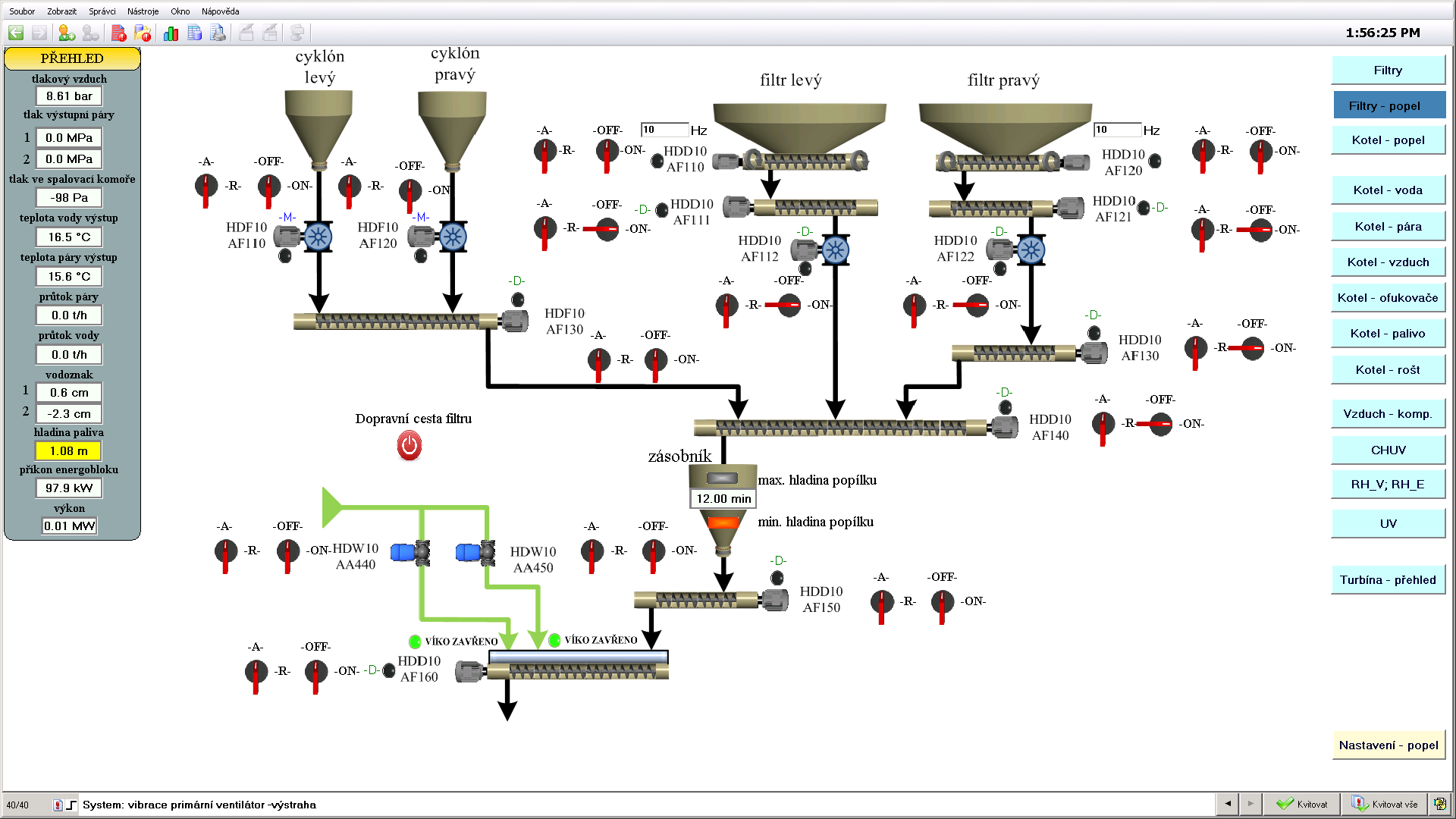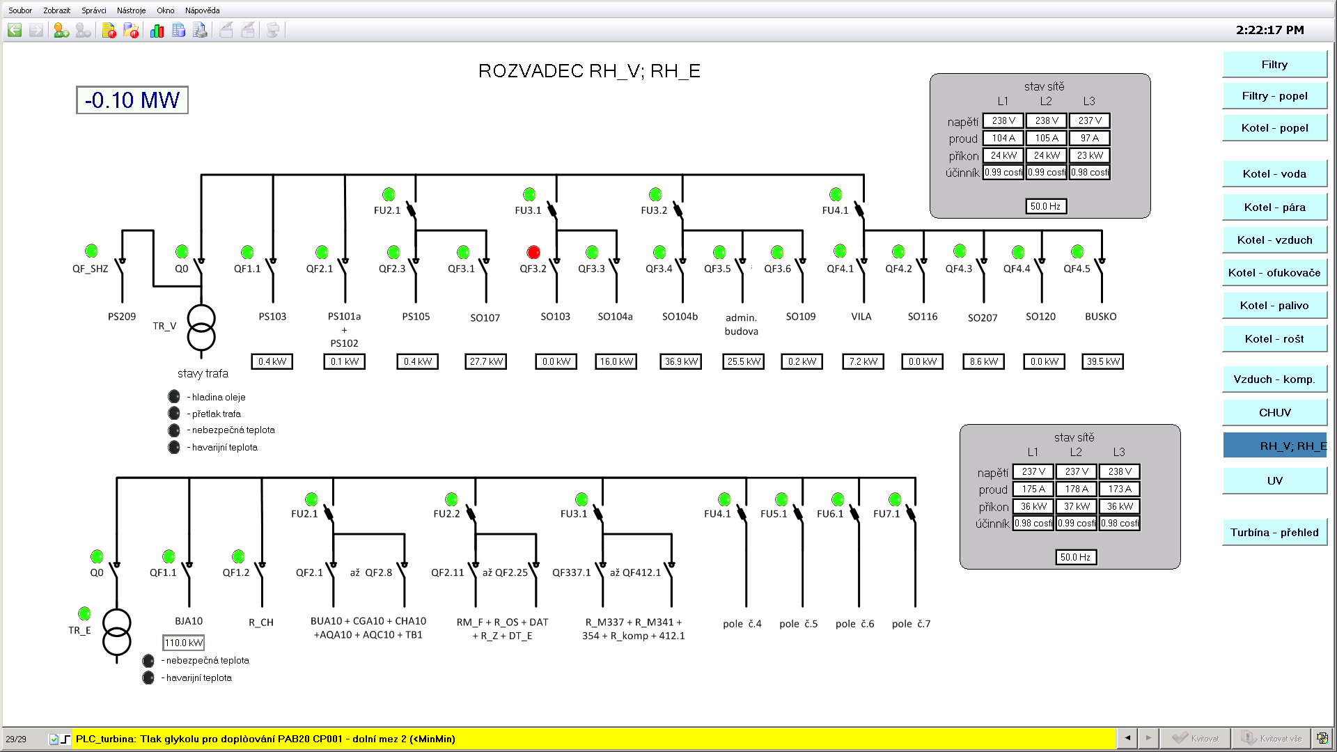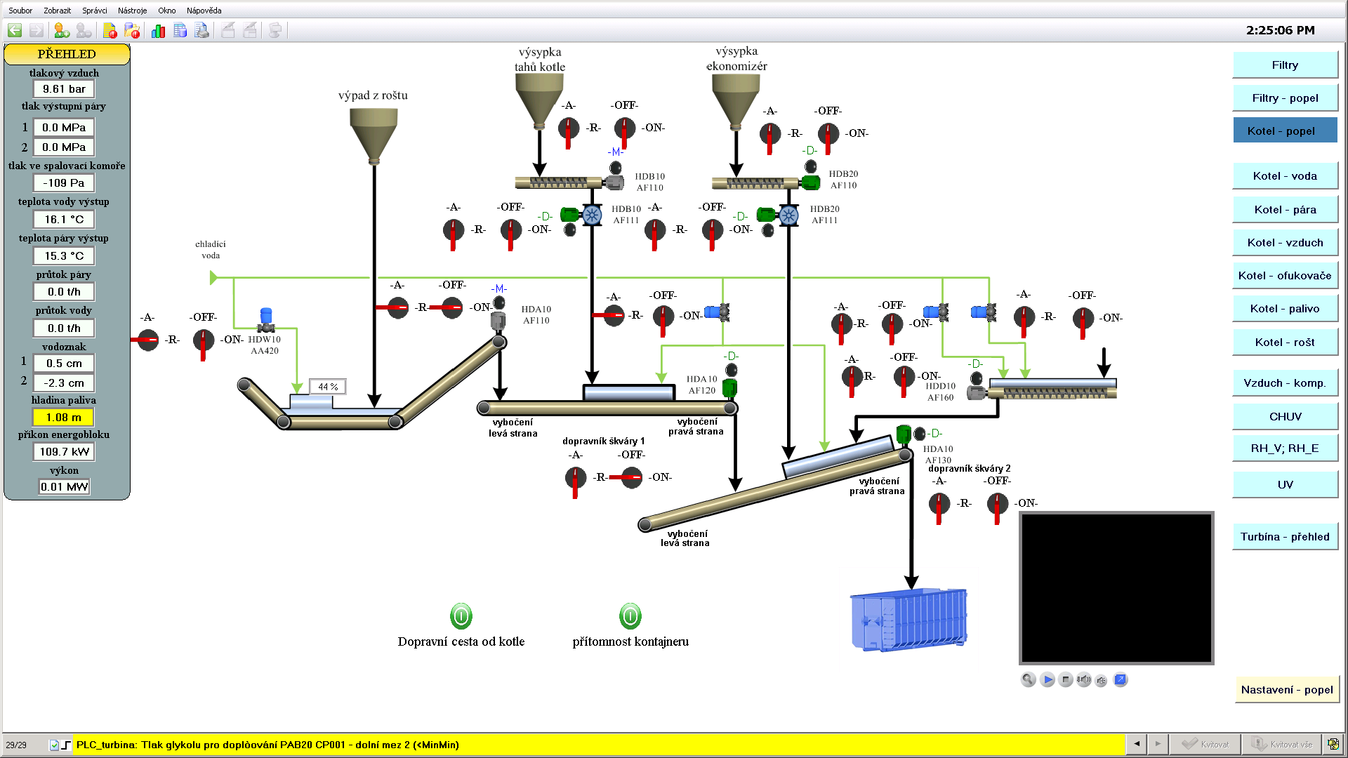 Řídicí systém parního kotle tepelné elektrárny BIOENEREGO KOMPLEX, Kolín. Realizace: Elpro Kolín, SEA Kolín.