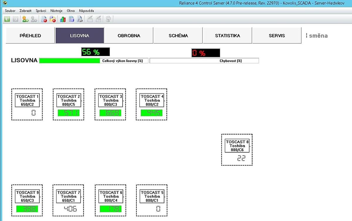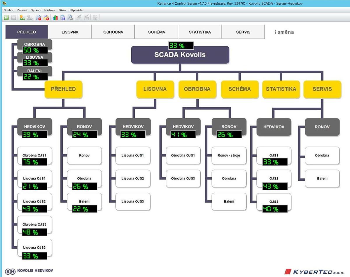 Komplexní monitoring strojů ve společnosti Kovolis Hedvikov, Česká republika. Realizace: Kybertec, s.r.o.