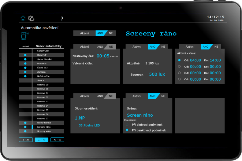 • přes 30 čidel, které řeší úplnou automatiku domu po stránce osvětlení, stínění, ale i hudbu