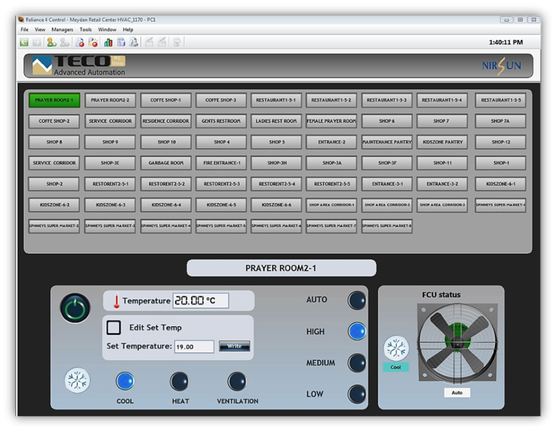 S pomocí uživatelsky přívětivému systému uživatelé mohou řídit všechny klimatizační jednotky v obchodím centru. Mohou nastavit požadovanou teplotu a klimatizace pak funguje automaticky nebo mohou její výkon ovládat sami.