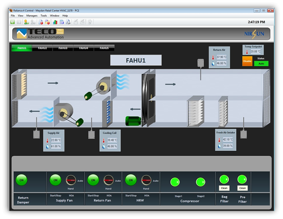Systém Tecomat Foxtrot a SCADA Reliance umožňují přehledné sledování všech ventilátorů z laptopu nebo mobilního telefonu.