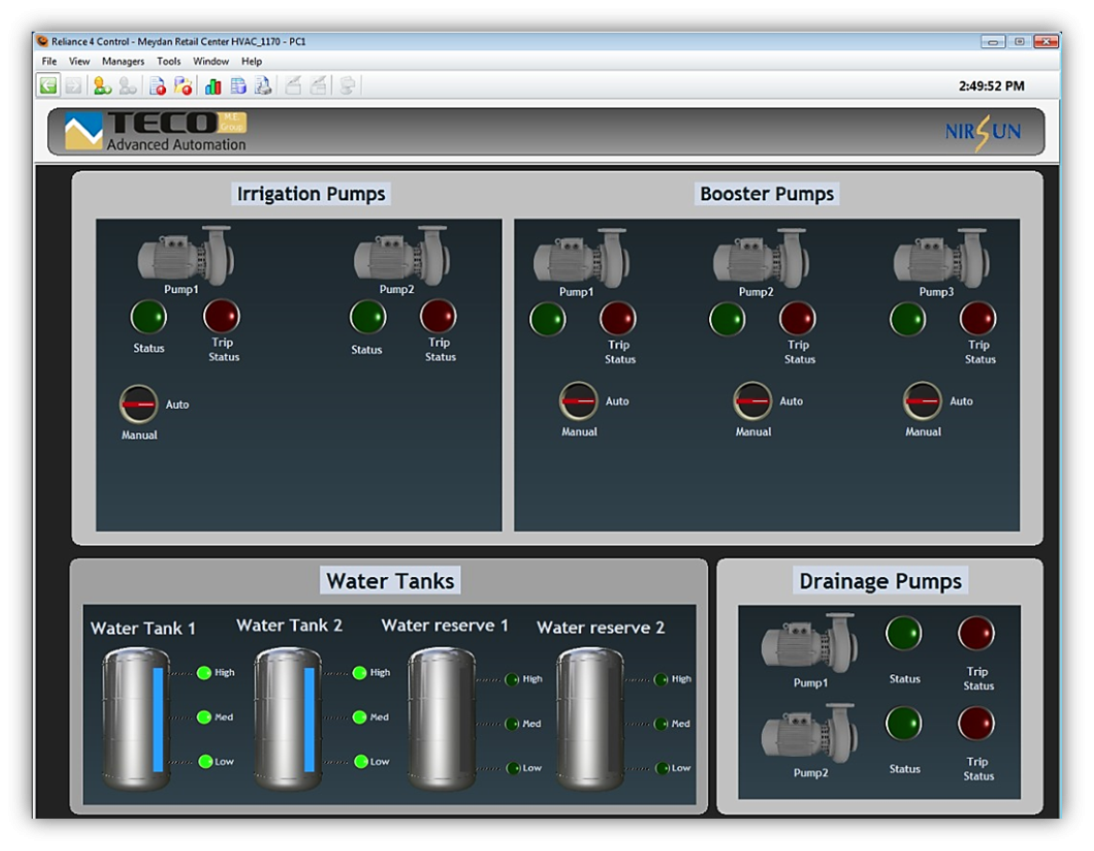 Tecomat Foxtrot s pomocí systému SCADA Reliance umožňují také pohodlný monitoring vodních nádrží a odvodňovacích čerpadel