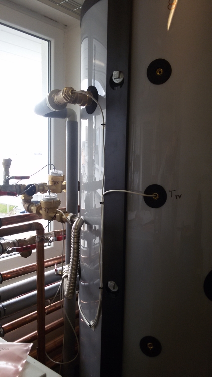 Celý systém je vybaven 39ks teplotních čidel a 9ks kalorimetrů, které zabezpečují dokonalý přehled o dodávané a odebírané energii v jednotlivých režimech provozu. Na výřezu vizualizace jsou vidět např. teploty média v jednotlivých vrtech a kontrolní teploty. Těchto osm měřících bodů je rovnoměrně rozmístěno mezi prvním a druhým vrtem.