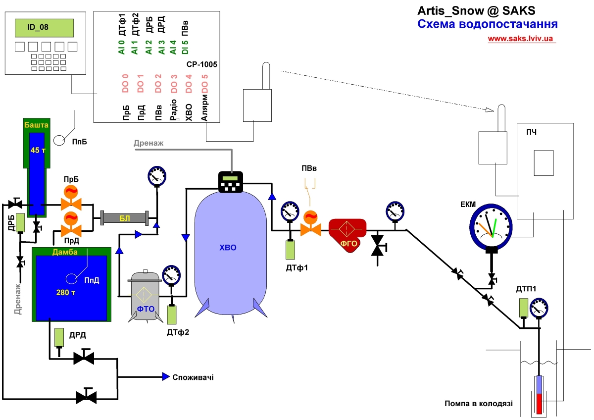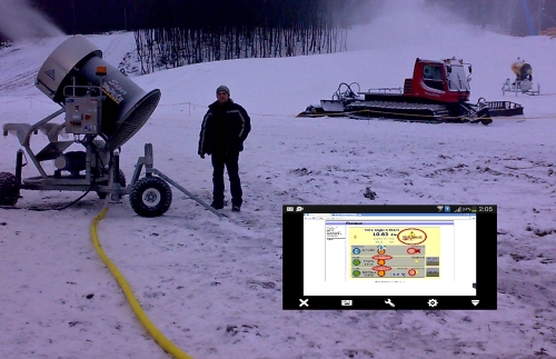 Na technologii sněhového děla je řízena a monitorována příprava vody a její doprava až na svahy, kde jsou umístěna děla. Areál se nachází v lyžařském a lázeňském středisku Ždenijevo.