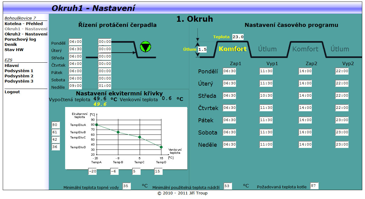 Vizualizace je řešena integrovaným webmakerem. Veškeré ovládání kotelny je řešeno pouze přes webové rozhraní.