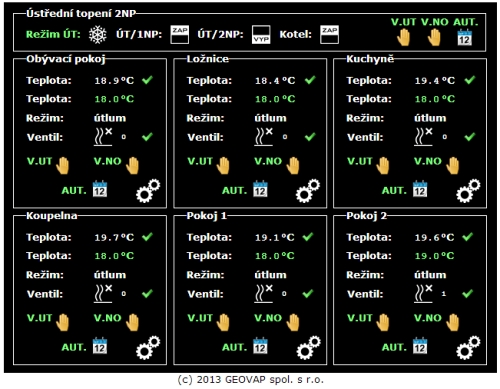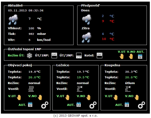 Řízení systému vytápění rodinného domu u Kroměříže. Realizace: GEOVAP, spol. s r.o.