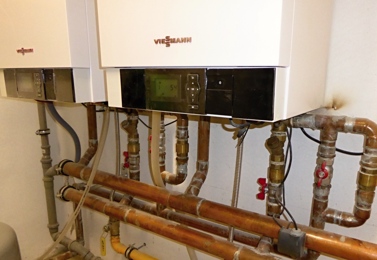 - Systém vytápění - 2 x plynový kotel Viesmann v kaskádovém řízení, 4 samostatně řízené okruhy vytápění – TUV, 1NP - radiátory, 2NP - radiátory, 2NP – podlahové topení
