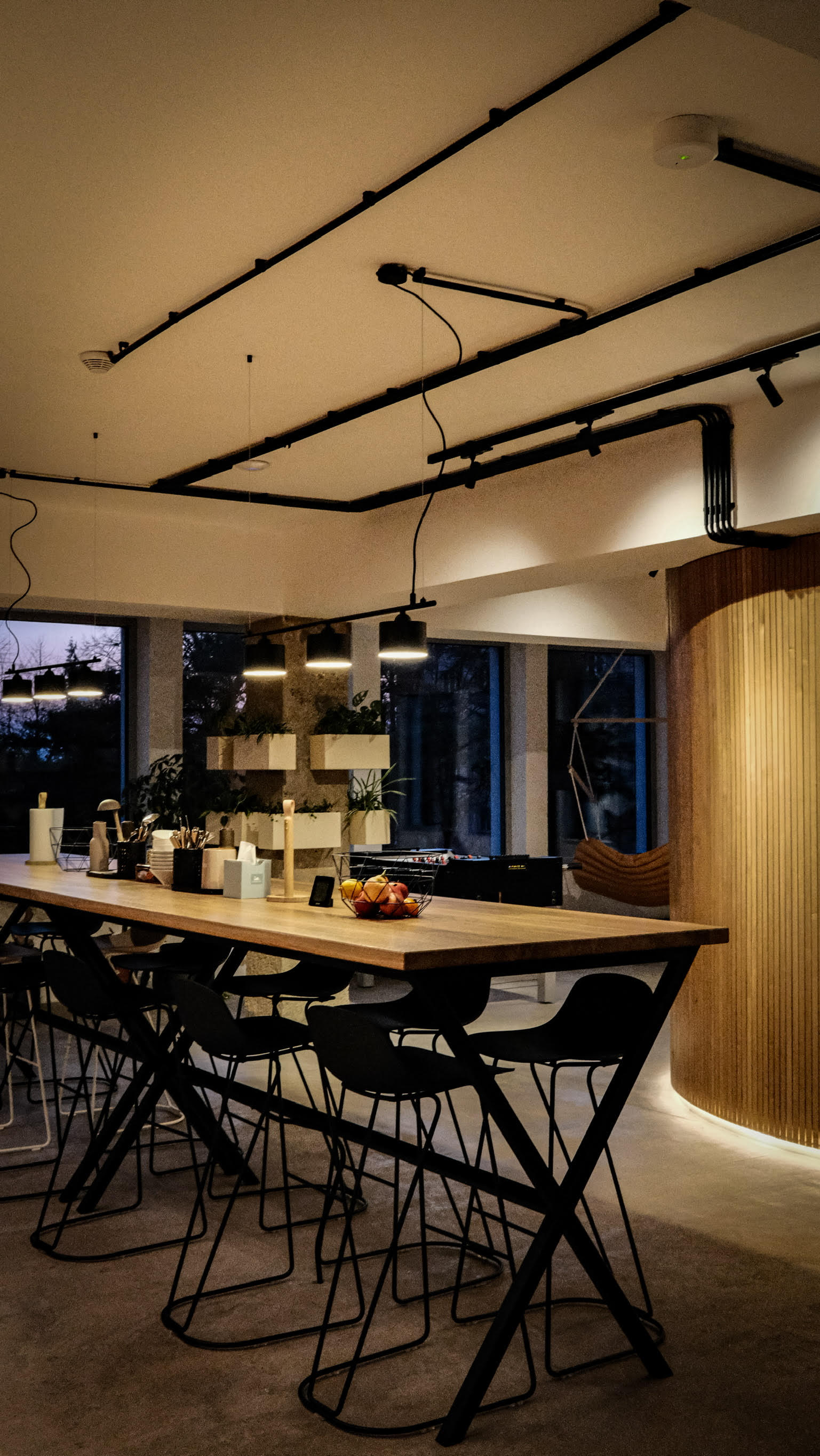 Na budově kompletně řídíme osvětlení, přičemž svítidla v části budovy, kde je umístěno oddělení vývoje a podpory jsou ovládány pomocí DALI pro světelný komfort za každého ročního období či počasí. Systém je rovněž integrován s bezpečnostním systémem, takže při aktuálním střežení objektu zůstávají svítit jen svítidla, které si klient zvolil. Další návaznosti jsou spuštěny v případě vniknutí narušitele, nebo požárního poplachu. Samozřejmostí je ovládání osvětlení loga v exteriéru dle intenzity venkovního osvětlení.