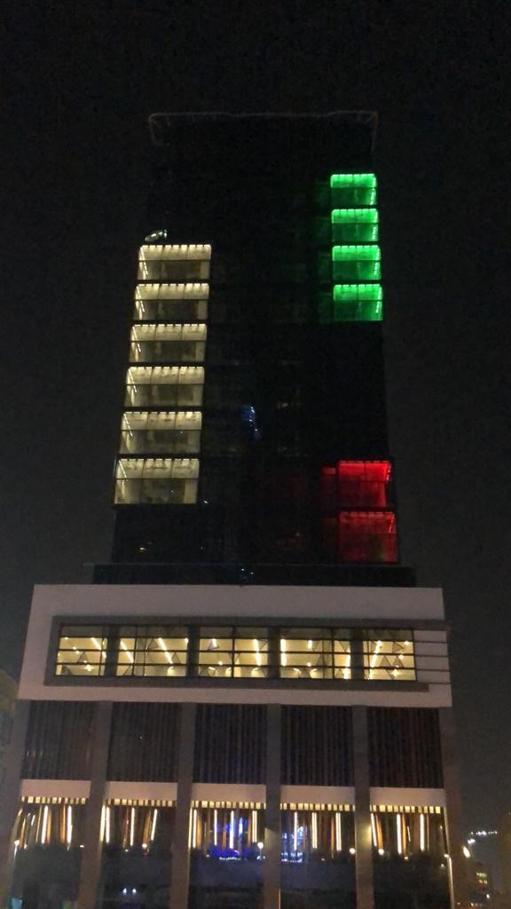 Výšková budova Tujjar je zvenku osvětlena 14 LED světelnými okruhy, které díky našemu řídicímu systému Tecomat Foxtrot umožňují osvětlení budovy různými barvami a motivy. Skupiny světel mohou také vytvořit různé obrazce, což dodává budově unikátní vzhled.