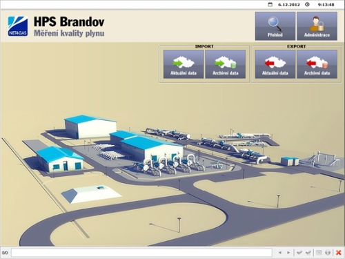 Vizualizace a archivace dat z přepočítávačů a chromatografů na hraniční předávací stanici plynovodu Gazela - Brandov, Česká republika. Realizace: GEOVAP, spol. s r.o.